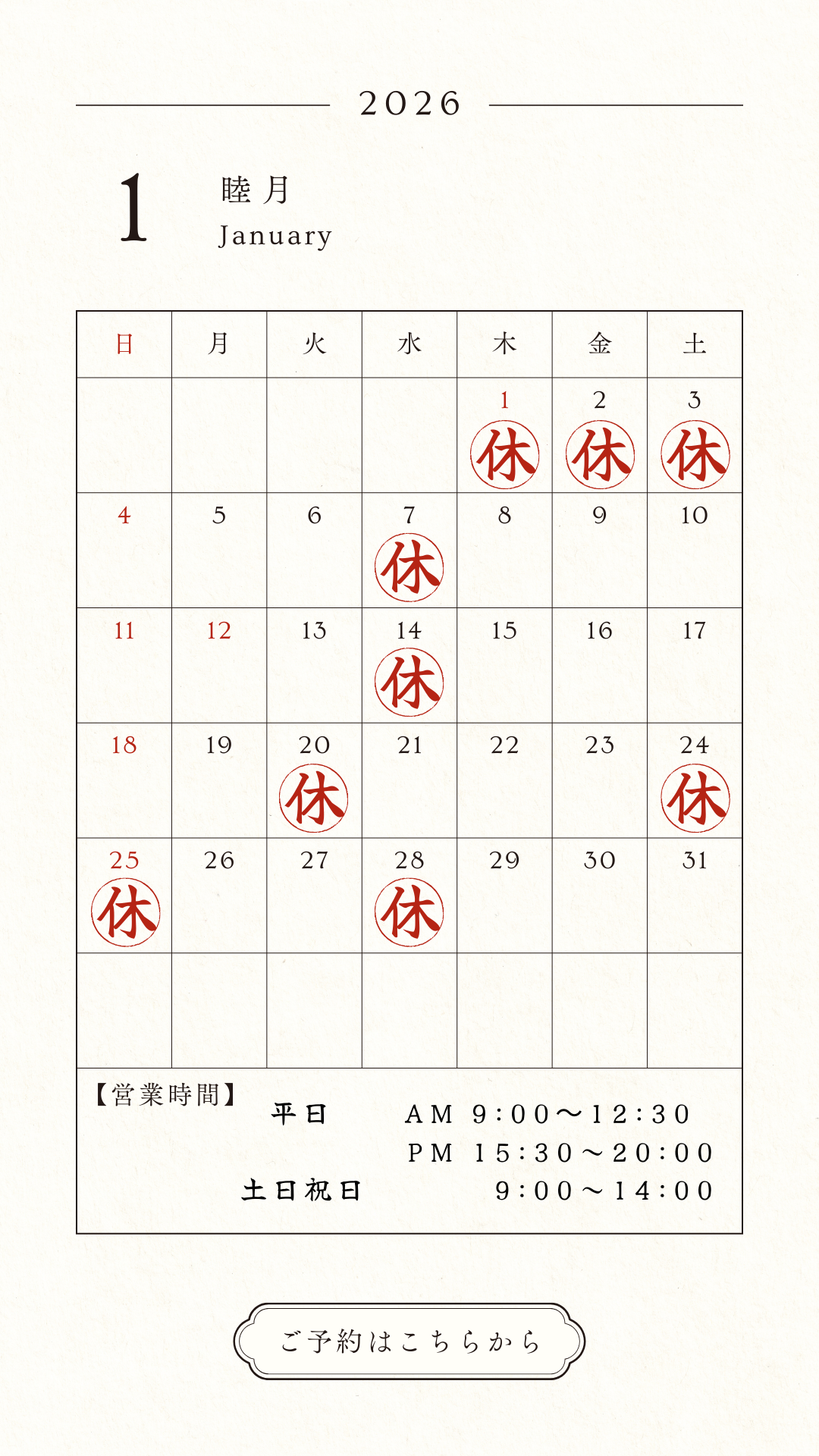 今月の診察スケジュール